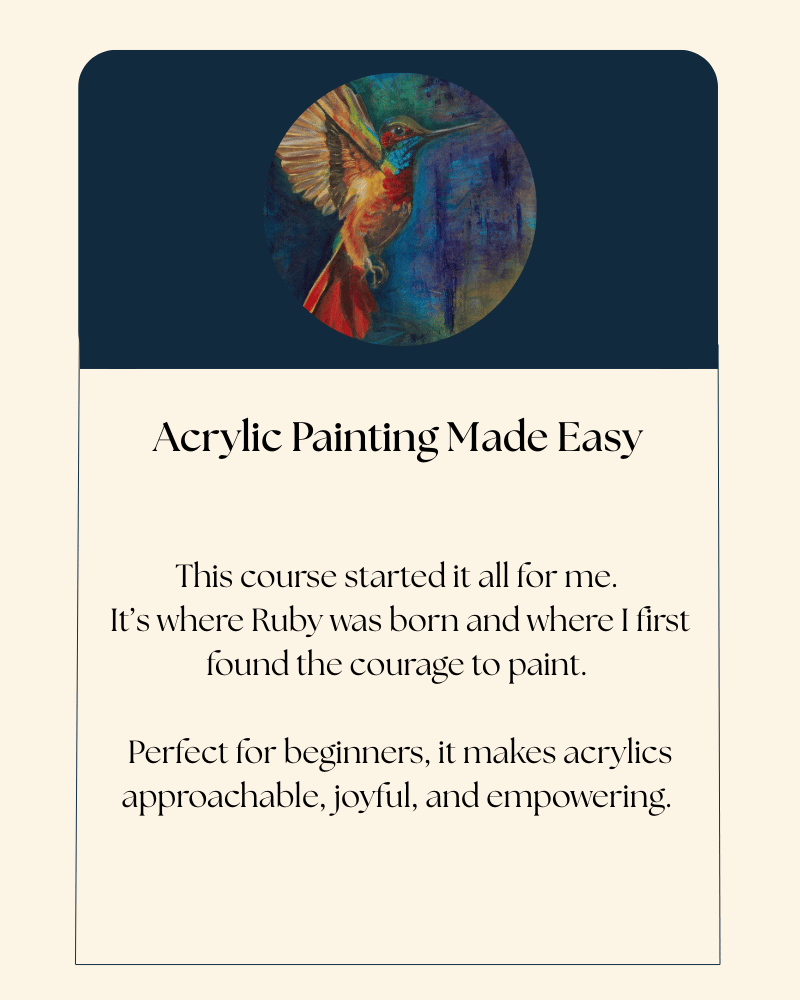 If you're serious about growing as an artist, I highly recommend starting with The Mastery Program. It includes almost every one of these courses for free as part of its full curriculum — making it the most valuable and transformative option. Otherwise, I suggest taking a class you already have the materials for. The acrylic lessons are amazing to start with if that's what you have on hand.