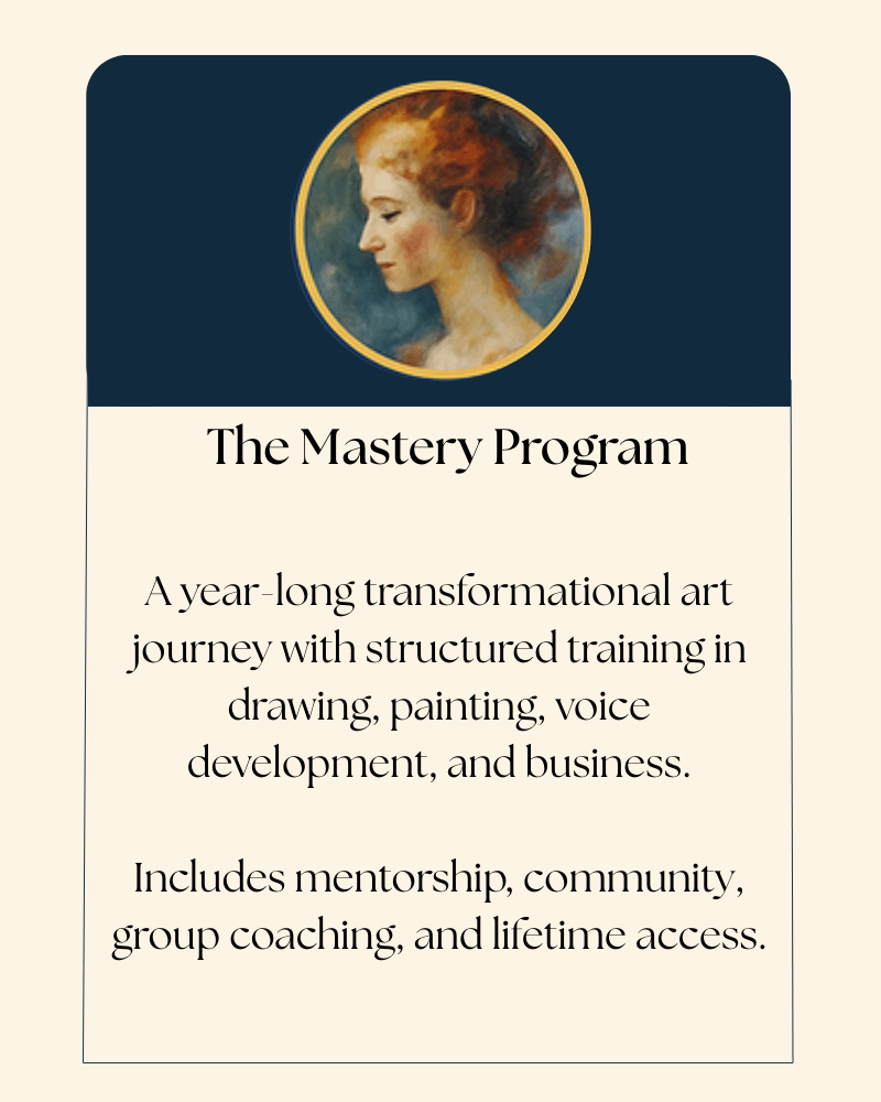 These courses lay the groundwork for confident, creative expression. Whether you're committing to the full Mastery Program or focusing on specific core skills, each class is designed to guide you step-by-step through drawing, painting, and mixed media with clarity, structure, and heart.